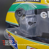 - Ayrton Senna Signed Tear-Off Visor mounted original BELL M3 helmet dating from 1994 Tribute Helmet