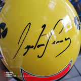 This high end display F1 helmet was signed by Ayrton Senna in 1991. Autographed directly on the helmet.