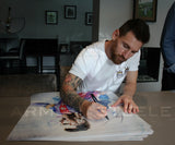 "FUEGO" LIONEL MESSI SIGNED SPORTS ART PRINT BY ARTIST SHAUN KELLY - FRAMED (32 X 28") LIMITED EDITION OF 10 (10/10)
