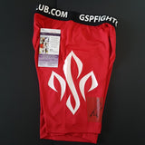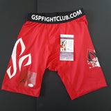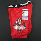 GEORGES ST-PIERRE GSP SIGNED UFC TRUNKS - 24K GOLD PLATED NAME PLATE + FULLY FRAMED - SOLD