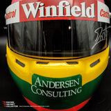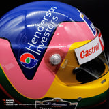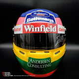 Description: This visor was actually worn on track by Jacques Villeneuve during the 1998 F1 season. It comes from Jacques Villeneuve's personal collection. The race worn / track worn visor is now mounted on a beautifully and newly painted, premium, full-size display helmet. Giving homage to his 1997 World Championship season.