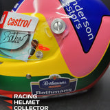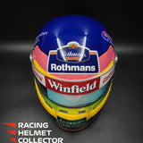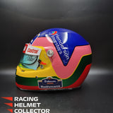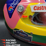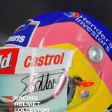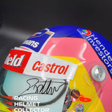 Description: This visor was actually worn on track by Jacques Villeneuve during the 1998 F1 season. It comes from Jacques Villeneuve's personal collection. The race worn / track worn visor is now mounted on a beautifully and newly painted, premium, full-size display helmet. Giving homage to his 1997 World Championship season.