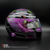 Lewis Hamilton Helmet Race Worn Used Visor Mounted On Promo Helmet Black & Purple Display Tribute Full Scale 1:1 AS-02198