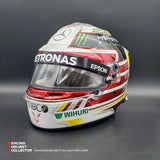 This beautiful, highly detailed, BELL HELMETS replica edition helmet of Lewis Hamilton commemorating his 5th World Championship win was signed in person by Lewis Hamilton at the Mercedes factory in early 2018.