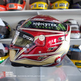 - EXTREMELY RARE: 2021 RACE WORN VISOR worn visor mounted on a 2019 Gold Abu Dhabi Promo Helmet