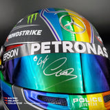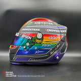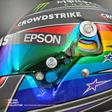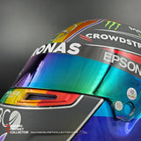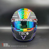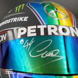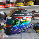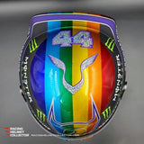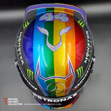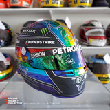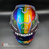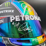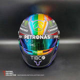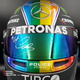 Lewis Hamilton Signed Race Worn Helmet Visor 2021 Mounted On Rainbow Abu Dhabi GP Promo Helmet Full Scale 1:1 AS-02817