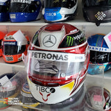Lewis Hamilton Signed Visor TEAR-OFF Mounted on Promo Helmet 2019 White Full Scale 1:1 AS-02287