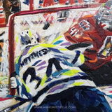"MATT'S TRICK" AUSTON MATTHEWS SPORTS ART PIECE MADE WITH HOCKEY TAPE BY ARTIST RENE BEGIN (1 OF 1) (30"X 24")
