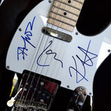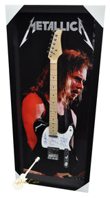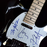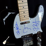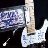 Metallica Signed Guitar Frame Premium Autographed Black & White Telecaster Replica Autographed by Hetfield, Ulrich, Hammett + Backstage Pass Signed by Newsted AS-02475
