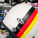 This is an original ARAI Helmet. FIA 8858-2010. The visor is autographed by Sebastian Vettel. The helmet is painted by Sebastian Vettel's official painter, JMD Helmet Design (jmd.de). This premium helmet is a tribute to Sebastian Vettel's final year in the F1 circuit. The back of the helmet has a hologram by JMD showcasing the serial number JMD SV-M-05/22. A true piece of F1 racing history.