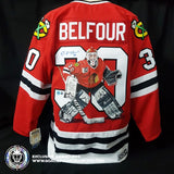 ED BELFOUR SIGNED JERSEY ART EDITION HAND-PAINTED CHICAGO BLACKHAWKS AUTOGRAPHED