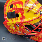 All of our collector goalie masks are painted on PRO caliber goalie masks made out of fiberglass, carbon fiber and Kevlar reinforcements.