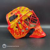 This tribute goalie mask is signed by HULK HOGAN of the HULKAMANIA TRIBUTE.